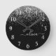 Relógio de Nome do Monograma de Script Brugado com Glitter Glitter Glitter Glitter Preto e Silver Sparkle. Isto faz o doce e perfeito aniversário de 16 anos, casamento, chá de panela, aniversário, chá de fraldas ou festa de solteira presente para alguém que ama luxo de luxo e estilos quíticos.