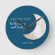 Relógio de parede azul marinho e branco "Eu te amo até a lua e de volta" para o quarto ou berçário do seu bebê menino. Personalizado com um nome. Entre em contato conosco para obter ajuda com a personalização ou para solicitar produtos correspondentes.
