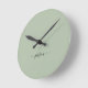 Relógio moderno com um fundo verde sábio e um nome de script feminino preto. Personalizar com seu nome