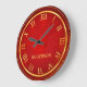 Relógio Redondo Nome Personalizado Red Dourado Classy Elegant Roma