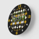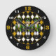 Um design de diamante preto, dourado e branco é o fundo de três soldados malucos. Os números de horas são grandes para facilitar a visualização da hora correta.