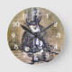 Ilustração de um coelho branco na moda em um chapéu, jaqueta e ascoto bronzeados. Os coelhos não ficam mais fantásticos do que isto. Na verdade, não o fazem. Wombo A. I. e colaboração artística.