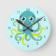Relógio Redondo Octopus azul e amarelo