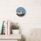 Farol brilhante com onda adiciona sotaque náutico alegre ao relógio da parede. Ideia viva para decoração em casa ou no escritório!