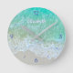 Relógio Redondo Onda turquesa oceânica, nome "faça você mesmo" ou