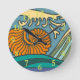 Este brilhante design azul é baseado em um papel de parede antigo com ondas de oceano azuis e uma casca de náuseas laranja. Baseado em Verneuil art nouveau design.