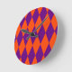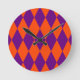 Relógio Redondo Orange and Purple Harlequin Checkered Design