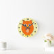 This owl design wall clock is a timekeeping device designed to hang on a wall, serving as both a functional tool and a decorative focal point for a room. Made from acrylic and features a pre-installed backside hanging slot for easy hanging and a non-ticking design. You can customise this wall clock with any text of your choice. Should you require any help with customising then contact us through the link on this page. Orange owl bird design wall clock