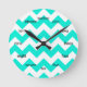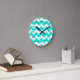Relógio Redondo Padrão Aqua e Chevron Branco