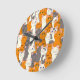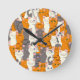 Relógio Redondo Padrão de diagonal do gato preto branco do Ginger