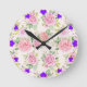 Relógio Redondo Padrão de Flores Românticas