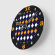 Relógio Redondo Padrão de Harlequin Azul e Laranja