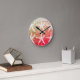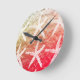 Relógio Redondo Padrões de Estrela-do-Mar Branco com Folha Dourada