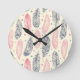 Relógio Redondo Padrões De Penas Étnicas Rosa E Roxo