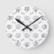 Um padrão feito de patas e ossos de filhotes. Relógios de parede personalizados em branco e cinza. Design de estilo cartoon. Ideia de presente para amantes de cães.
