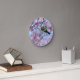 Relógio Redondo Pássaro Azul em Flores Japonesas de Cereja Rosa