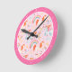 Relógio Redondo Pequena Garota Rosa Pink Unicorn Padrão com Nome