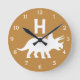 Create a warm and modern look in your child’s room with this personalized triceratops nursery wall clock. Designed in a soft neutral brown/tan background with a bold white triceratops silhouette and customizable initial, it fits perfectly into gender-neutral nurseries, dinosaur-themed rooms, and playroom decor.