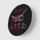Está quente! Pimenta vermelha de pimenta quente em um relógio preto de fundo. O texto é personalizável.