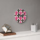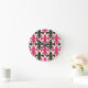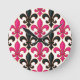 Relógio Redondo Pink Black Baroque Fleur-de-lis Pattern Design