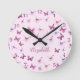 Relógio Redondo Pink Butterflies Pattern Custom Name