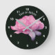 Pretty pink rose floral wall clock. Flower photography by Susan. This image is available on many cards and products in my main store Smilin' Eyes Treasures. Visit my Profile page to find links to all of my stores.