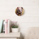 Fotografia de um adorável leitão rosa e preto com fundo de palha.