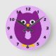 This owl design wall clock is a timekeeping device designed to hang on a wall, serving as both a functional tool and a decorative focal point for a room. Made from acrylic and features a pre-installed backside hanging slot for easy hanging and a non-ticking design. You can customise this wall clock with any text of your choice. Should you require any help with customising then contact us through the link on this page. Purple owl bird design wall clock