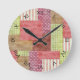 Relógio Redondo Quiltblock de padrões de chic de patch de país