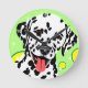Arte colorida de cães com dálmata branco com manchas pretas em um fundo verde claro e círculos amarelos