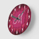 Relógio Redondo Raspberry Dourada Stripe Moderna de Parede Rosa Qu