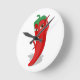 Um personagem de desenho animado de pimenta vermelho e quente. Design original. Relógios de parede. Ideia do presente.
