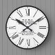 Um Relógio de Parede para um Restaurante, Café ou Bistro. O relógio tem o nome do negócio do café e também o endereço. Números atraentes no estilo romano e um fundo branco limpo. O relógio perfeito para a parede do bar de café.