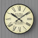 Um Relógio de Parede para um Restaurante, Café ou Bistro. O relógio tem o nome da empresa e também o endereço. Números atrativos no estilo romano e um fundo do estilo de pergaminho.