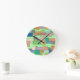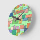 Este relógio de parede tem um design boho moderno de retângulos acoplados a linhas horizontais em vários tamanhos e cores boho.