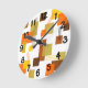 Este relógio de parede tem uma design moderna do século médio de retângulos e linhas nas cores dos anos 70.