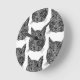 Cabeça ornamental branca e negra de um gato, inspirada num animal vivo e originalmente desenhada com caneta no papel.