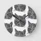 Relógio Redondo Retrato Ornamental de Gato Negro e Branco