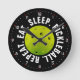 😍 Retro Picklebolas sobre fundo preto. Perfeito como presente para o jogador de picleball. com números Relógio Redondo 😍 Lâmpadas Retro / Motif preto e texto personalizado. Come, Dorme. Pickleball. Repetir e colher-taque verde real