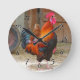 Relógio Redondo Rhode Island Red Rooster Crowing em Barnyard