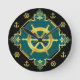 Relógio Redondo Rodas/âncoras marítimas/ ouro/preto/aqua