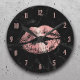 Relógio Redondo Rosa Dourado Lipstick beijando mármore preto moder