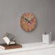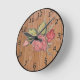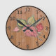 Relógio Redondo Rosa vermelha no fundo de madeira