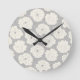 Relógio Redondo Rosas brancas em Cinzas claras - padrão uniforme.