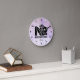O relógio personalizado para um enfermeiro tem um fundo de aquarela roxo. Este design apresenta as Iniciais NP, a caduceus e o chapéu de enfermeiro. presente de excelente para o dia de enfermeiro ou para demonstrar apreço à enfermeira