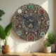 Sagittarius Wall Clock com: vintage industrial, Steampunk Watch estiling com grandes números facilmente visíveis. Design do relógio original coberto por ouro, diamantes, esmeraldas, pedras rubis e signos zodiacos astrológicos circulam. (o fundo do relógio é impresso / não contém gems reais).
