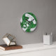 Este relógio verde e branco de voleibol feminino com nome de jogador personalizado e número de camisa apresenta um padrão caleidoscópico floral misturado com os painéis verdes de voleibol e um padrão de espiral de abstrato artsy misturado com os painéis brancos - de katz_d_zynes