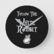 Siga o coelho branco. Alice no livro de Wonderland dizendo. Uma citação engraçada com design tipográfico. Arte tipográfica com citações de livros. Versão preta.