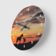 Relógio Redondo Silhueta Wild Mustang Mare e Foal com Sunset