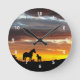 Relógio Redondo Silhueta Wild Mustang Mare e Foal com Sunset
